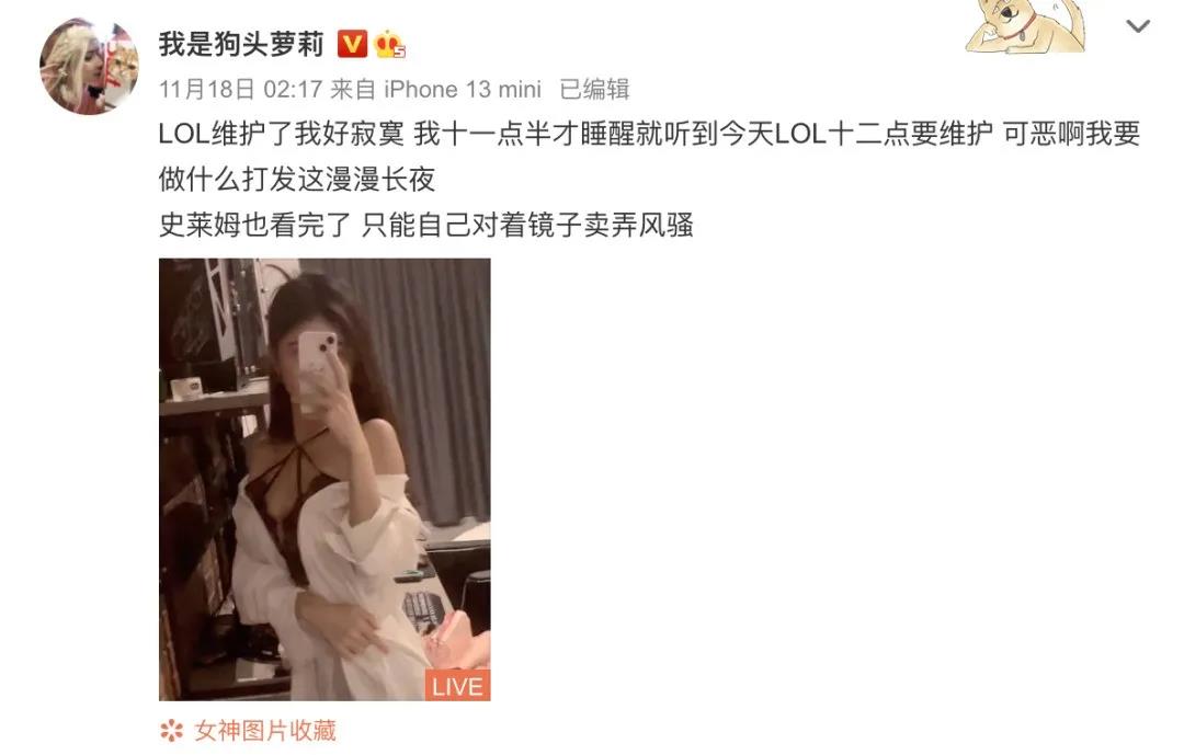近日LOL维护期间,我们的女菩萨狗头萝莉发文如何度过漫长的夜晚。