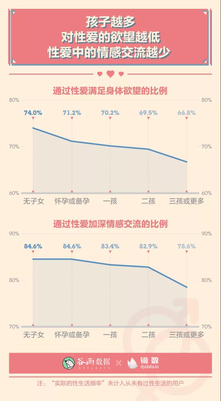 调查还显示,孩子越多,对性爱的欲望就越低,性爱中的情感交流就越少。每一个孩子的出生,可能都在让无性婚姻越来越近。