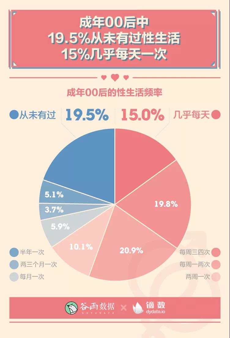 调查显示,有80.5%的成年00后已经有过性生活,其中15%的性生活频率达到每天一次(养生呢)。