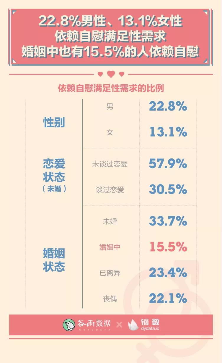 22.8%的男性、13.1%的女性当前依赖自慰满足性需求。
