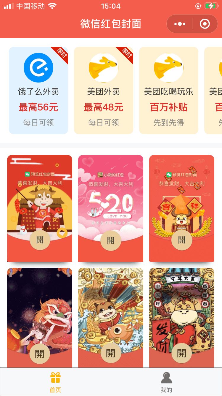 微信红包封面领取小程序,用户观看视频广告或邀请新用户获取微信红包封面序列号,还可以吸引外卖券