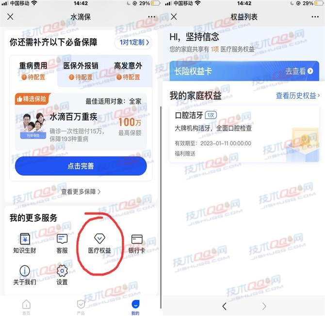 再去微信关注【水滴保】公众号,右下角【我的保单】-【我的保单】-【我】下拉【医疗权益】
