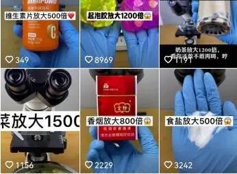 直接拍摄短视频,将拍的视频上传到抖音、知乎、头条……要么卖产品,要么卖广告,显微镜就是产品,相关的消毒水、除螨仪等都是产品。