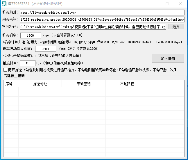 理论上支持所有平台的直播推流,可以多平台多账号同时推流本地视频,实现无人直播
