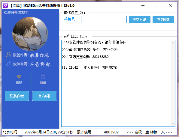 移动领30元话费自动操作工具v1.0