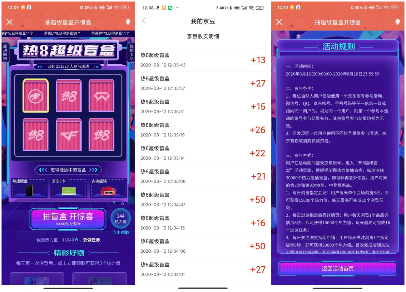 1.打开活动地址->去做任务都很简单进去返回就行了->每3万热力值就可以抽一次盲盒->每次开盲盒非必中
