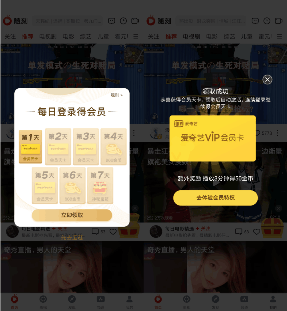 2、手机登录秒领取1天会员,还可以抽取现金奖励!
