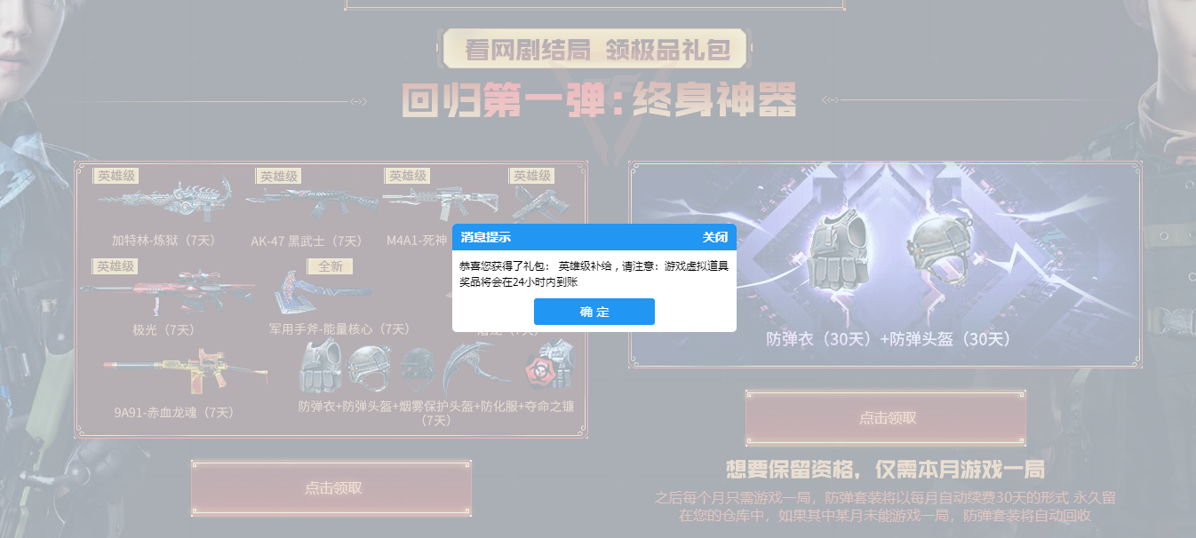 礼包含有:A47-黑武士、M4A1-死神、沙鹰修罗、极光、屠龙7天