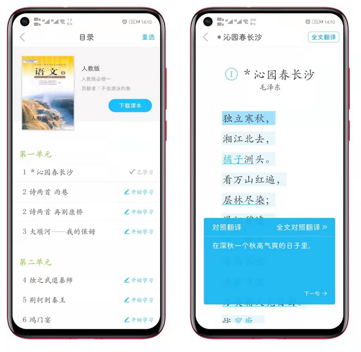 作品鉴赏直接剖析重点,堪比老师讲课.学习不仅要会看,还要会读,软件内置课文朗读语音,还有真人发音帮你矫正错误的发音.