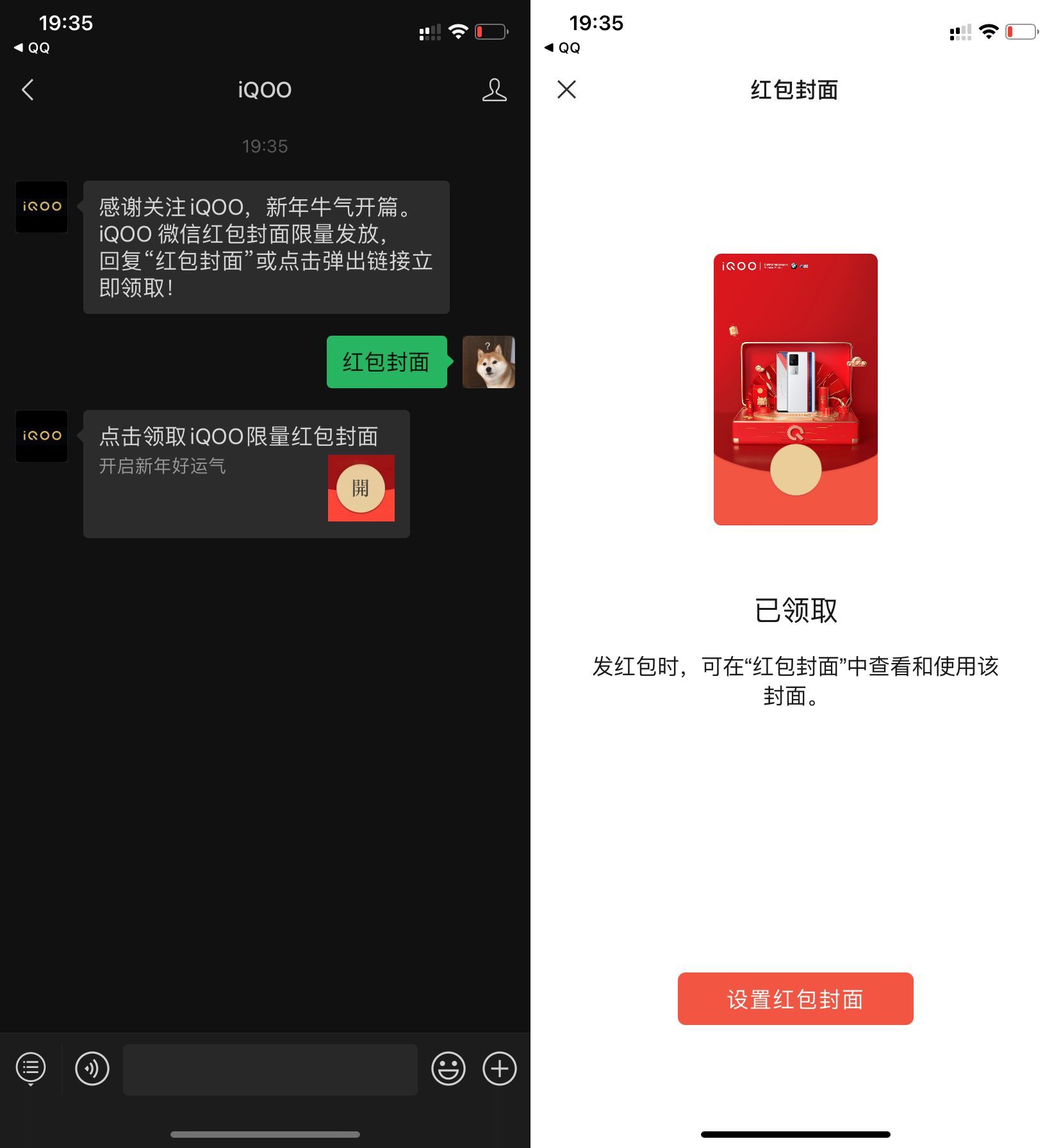 免费领iQOO微信红包封面