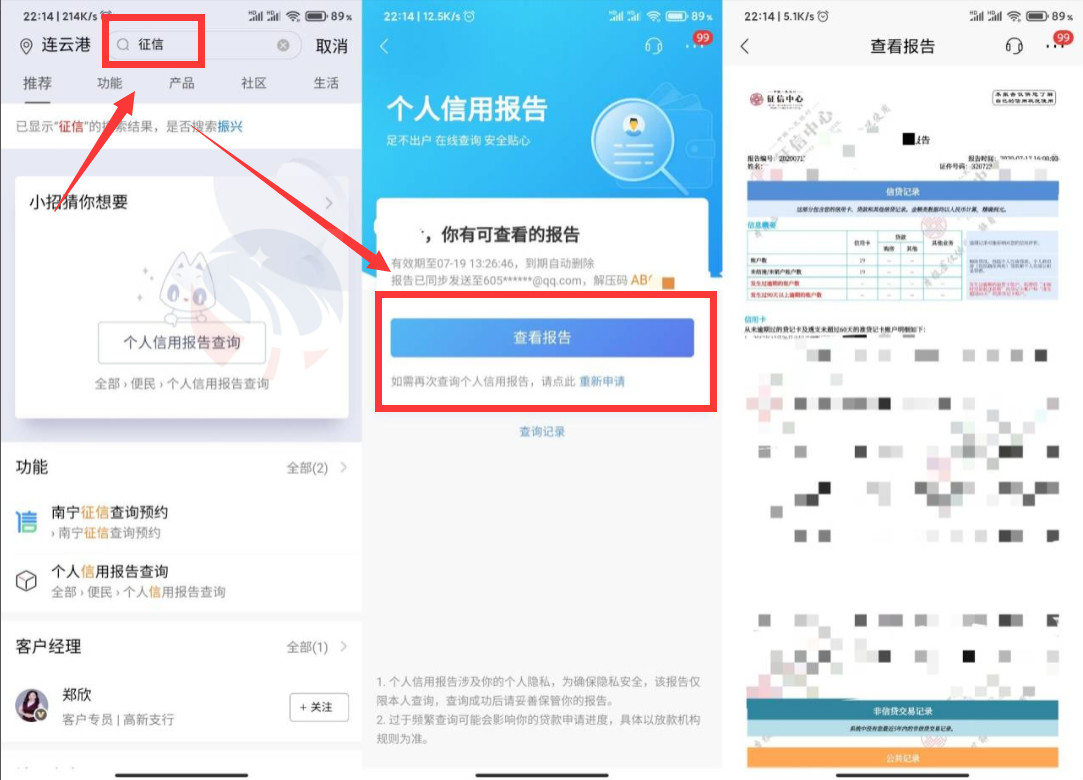 在消息代办里面即可看到报告, 查询的信息还是比较准确的,征信没问题的话