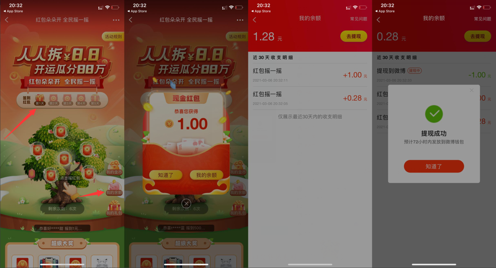 【微博新闻领1元红包】下载新浪新闻APP->打开地址跳转到APP->进去弹窗抽奖不管中没中->直接点签到红包->第1天->就会获得红包点我的余额提现->72小时内到微博里->到了再去微博钱包里手动提一次->还有其它红包看规则
