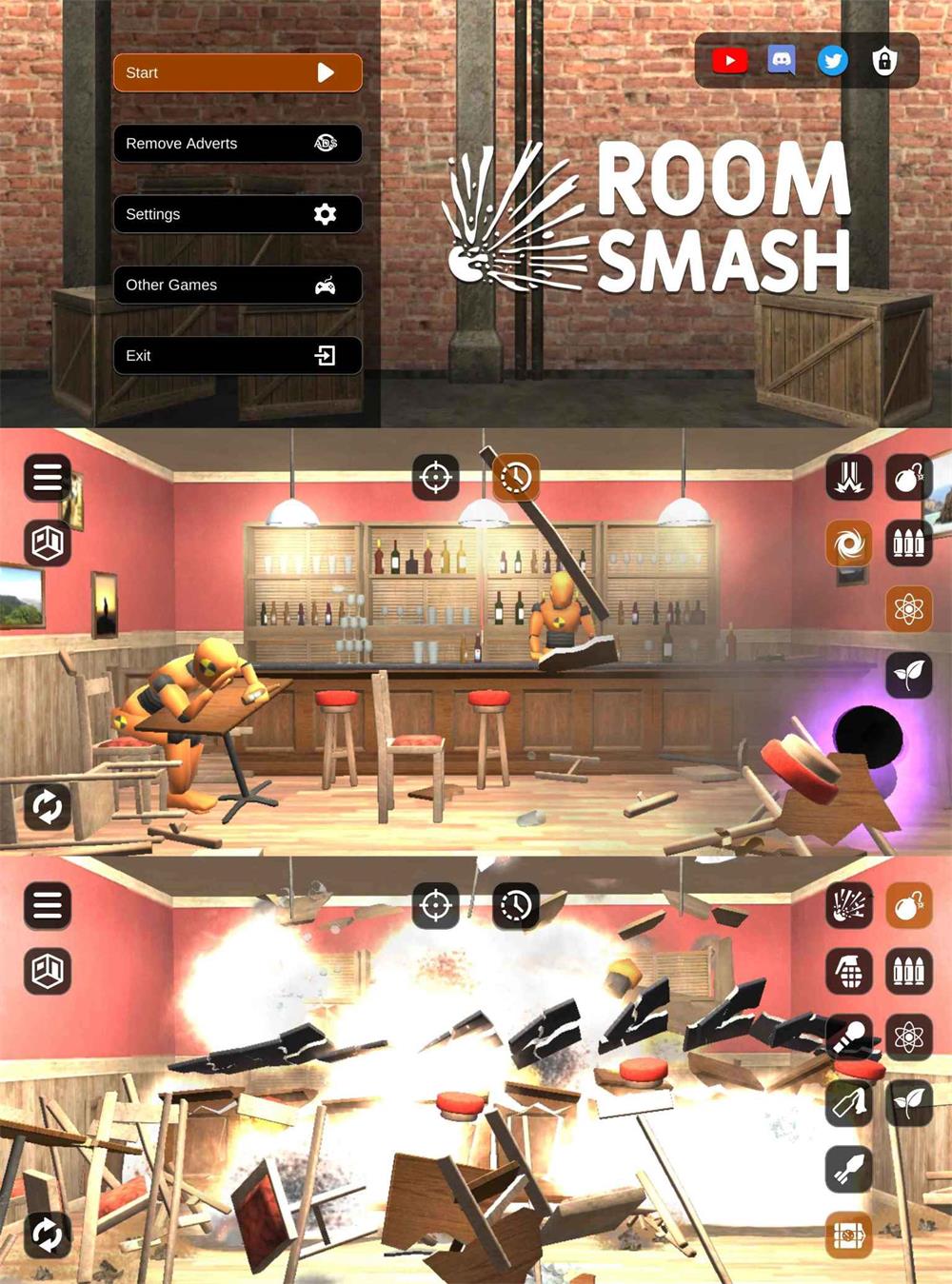 房间毁灭模拟器是一款放松解压的模拟破坏游戏。超多道具随意使用,多种场景模拟,真实物理引擎,模拟打造真实3D破坏效果,带给你不一样的视觉冲击。去广告。