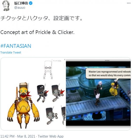 FF之父、独立传奇级游戏制作人坂口博信制作3年多的新游戏《Fantasian》已经正式公开,日前坂口博信再次公开《FANTASIAN》设定新图,主角LEO的好伙伴Prickle & Clicker。