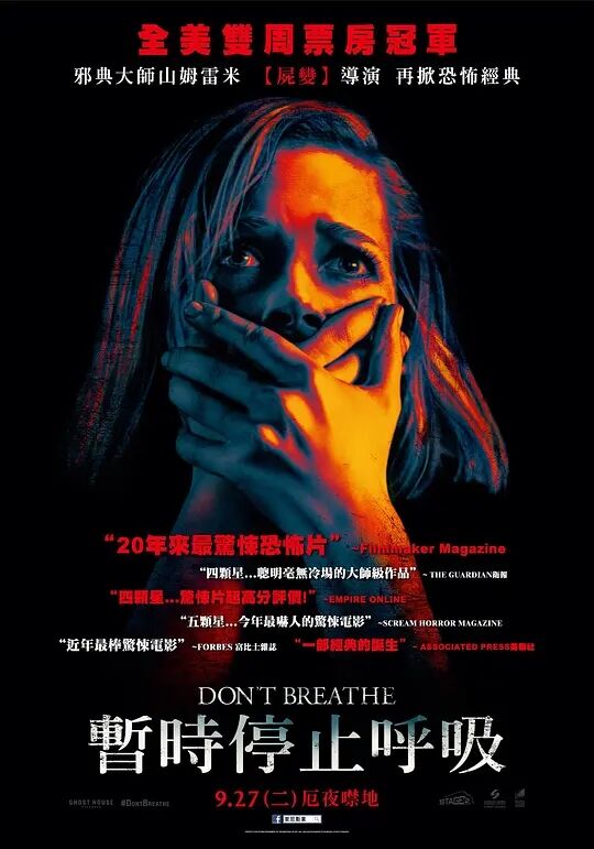 屏住呼吸(2016) 近乎密室逃脱的情设的恐怖惊悚片。悬念和反转的设置很巧妙,大致的结局其实可以猜到,连片头制片商的clip都吓了在场观众一跳. 拍摄特别凌厉,高潮招数从头到尾不断,剧情稍落俗套,但是看起来蛮爽的!