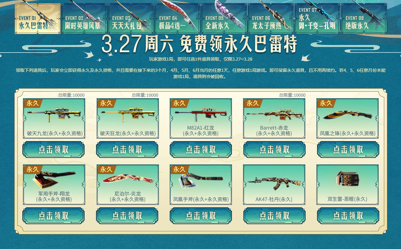 穿越火线游戏一局必领永久武器->下拉还能领手斧、尼泊尔 大炮等!还在玩的老兵领一手。