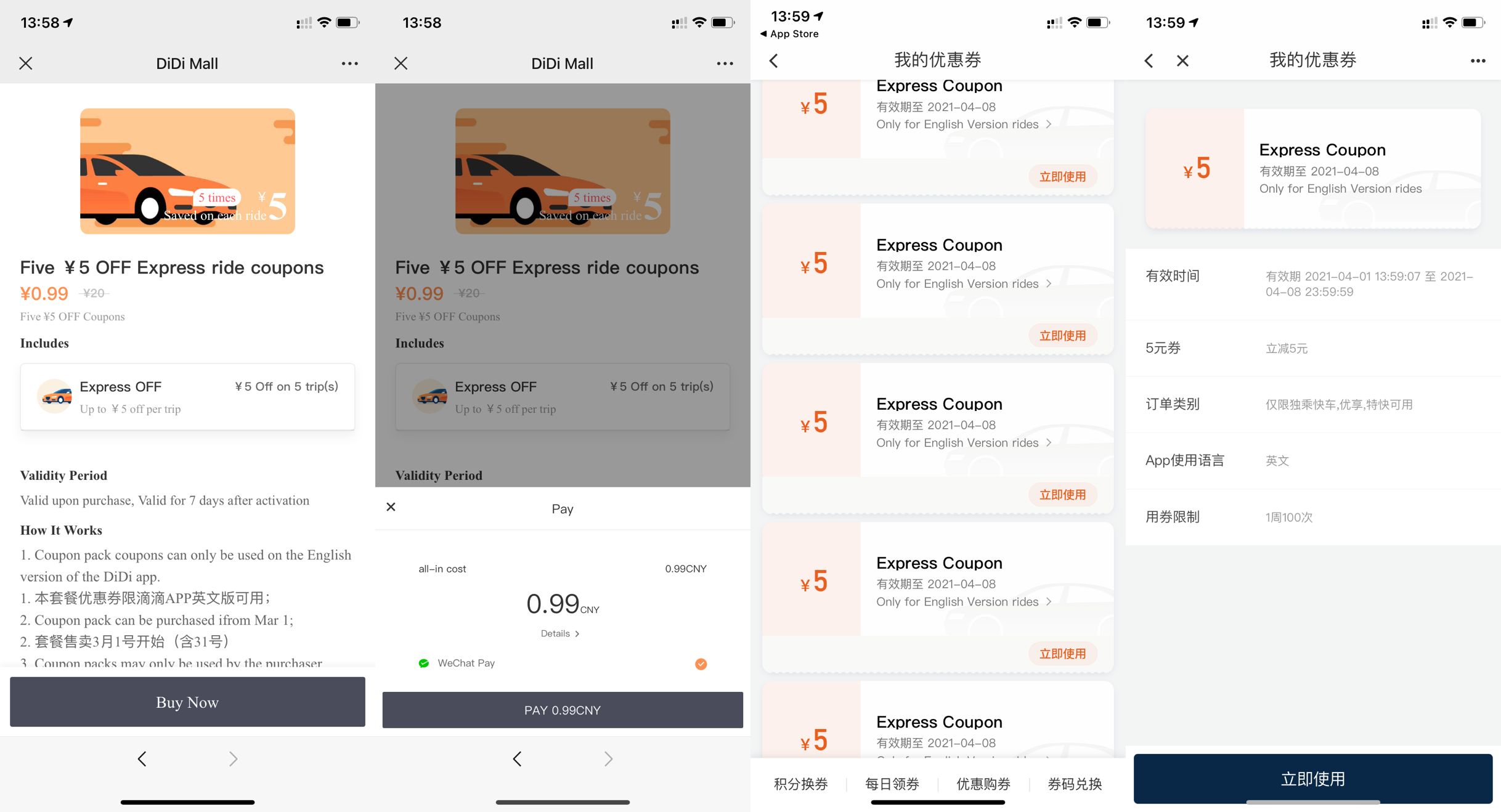滴滴0.99撸25元打车券 不限地区!包含5张5元无门槛英文优惠券!微信打开->支付0.99元购买即可->然后去滴滴APP->点左上角->钱包->优惠券即可查看->有效期7天!使用教程:中文版下单,语言设置成英文版手动付款就行了!节假日出行必备!