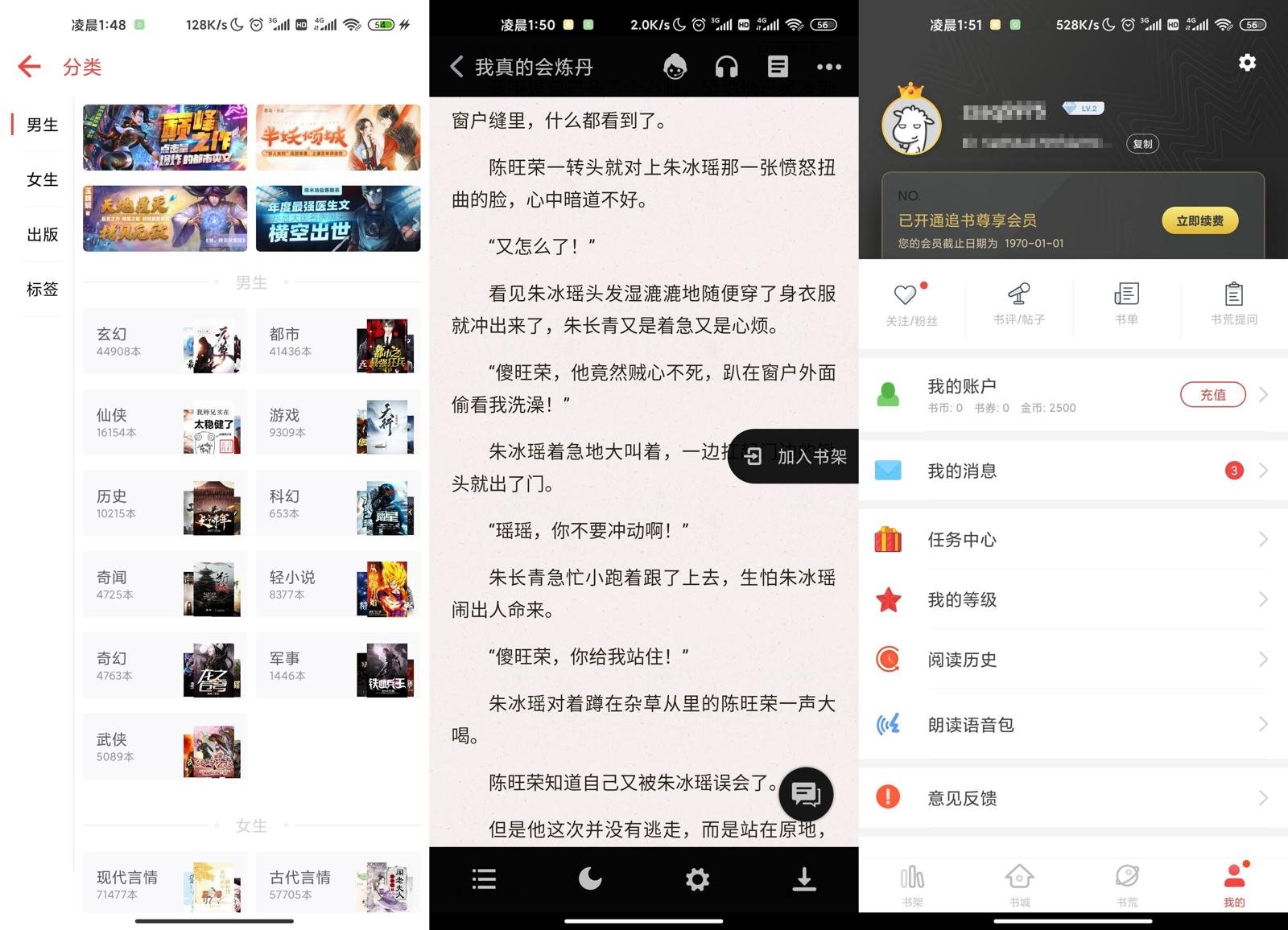 解锁女生专区、解锁换源功能、解锁自动阅读功能