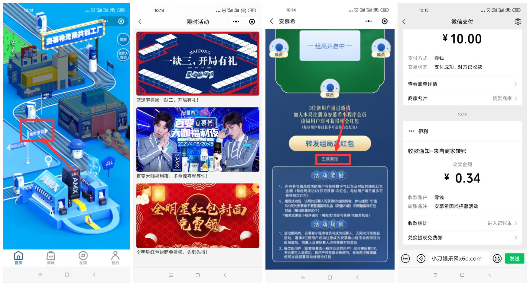 1、微信小程序搜索“安慕希”->首页->限时活动->开局有礼->发起招募拿红包