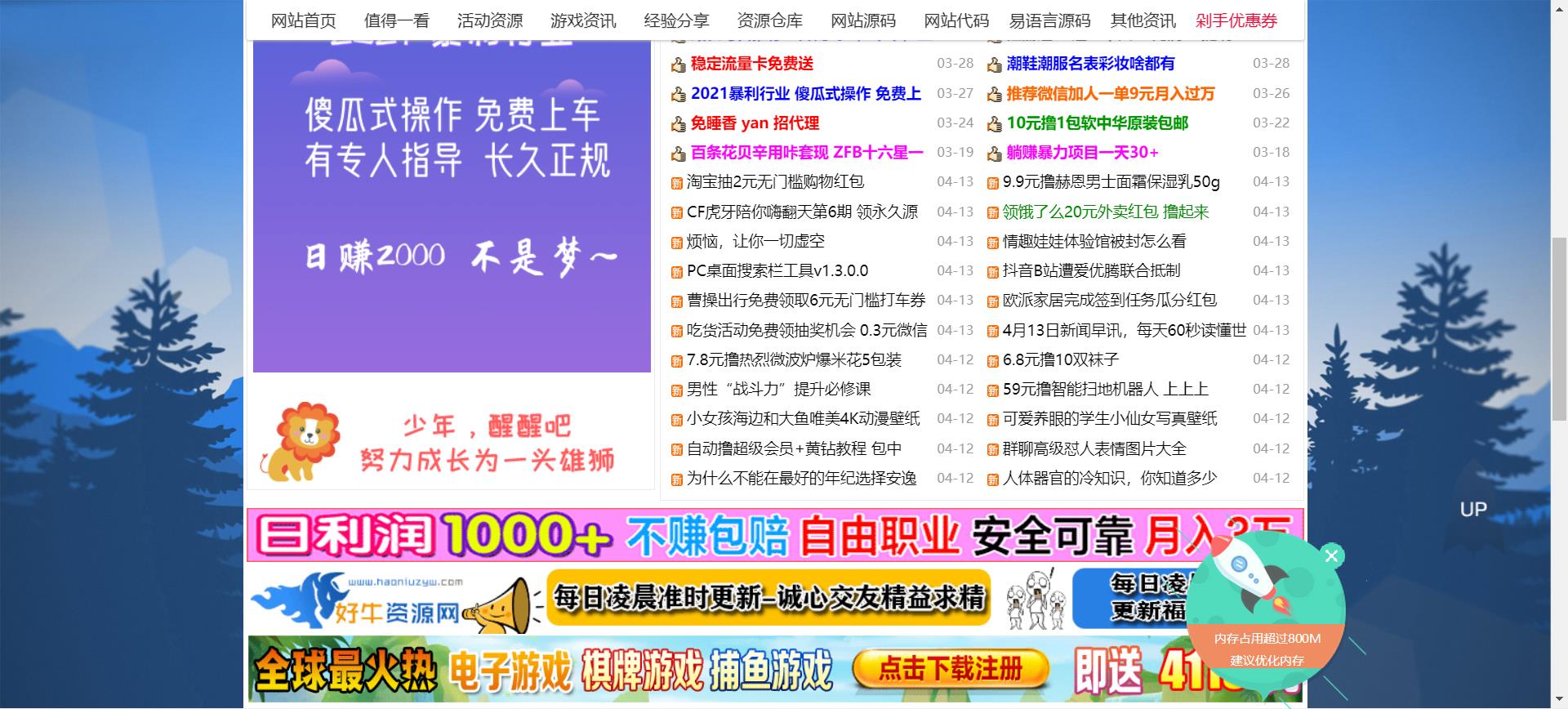 今天闲着无聊就逛了一下技术导航的站点,偶尔看到了很久没有接棋盘广告的流氓资源网,现在也是开始棋盘的广告了,对于很多资源网娱乐网站长想必是做稍微正规一点的站,是很难的了 。
