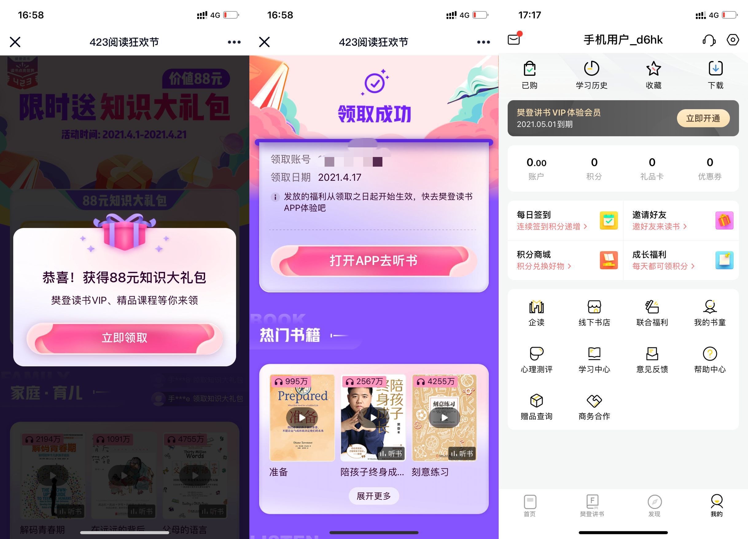 【樊登读书领7~21天会员】新用户领14天+7天,老用户领7天!一款专业的阅读手机APP,各种名人大师,为你提供最新的阅读见解,各种精品书籍推荐和书籍详解,帮助你养成良好的阅读习惯。