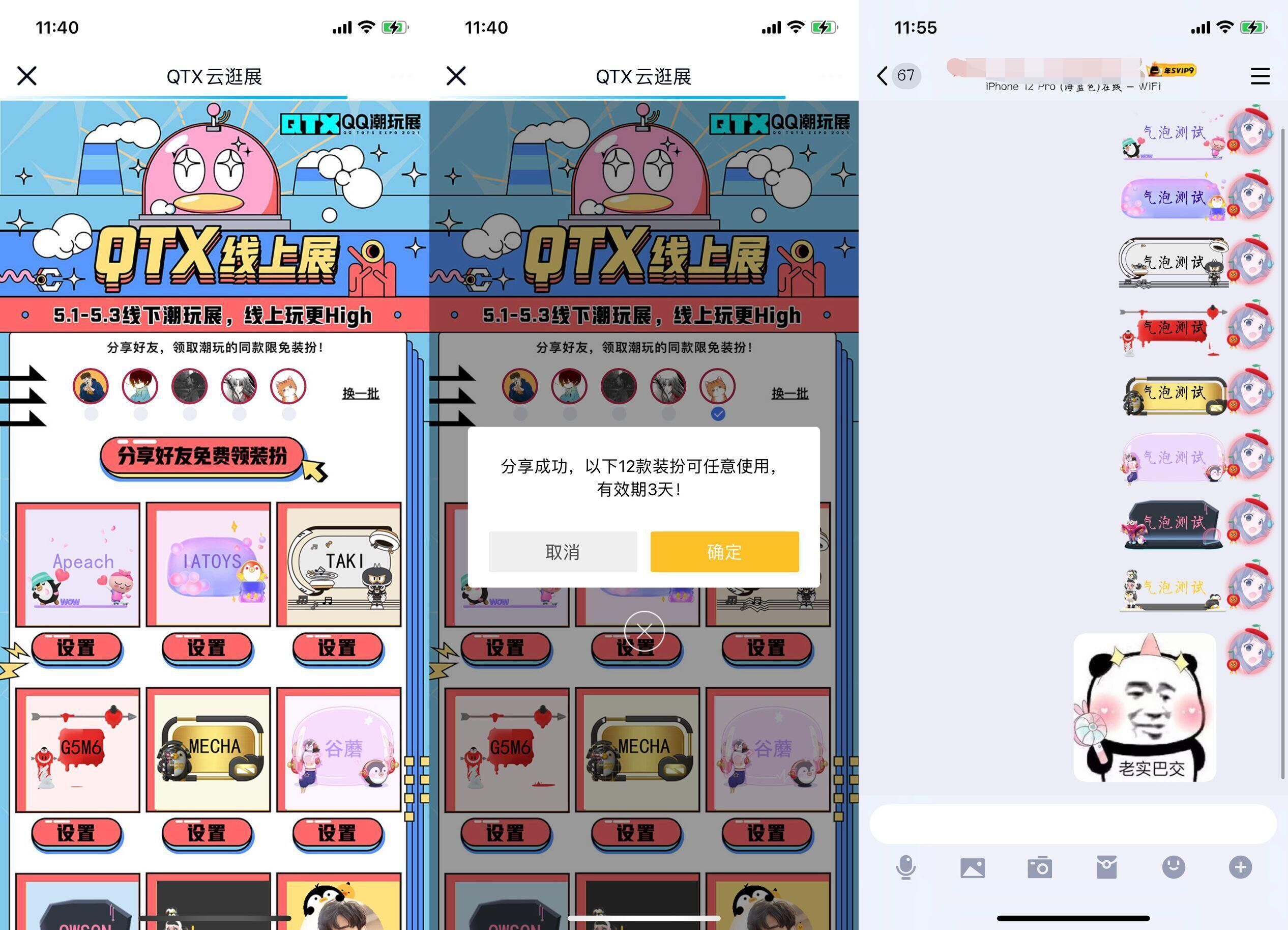 QQ最新一期限免装扮!“八款”气泡+“四款”挂件!打开链接之后分享就可以设置!