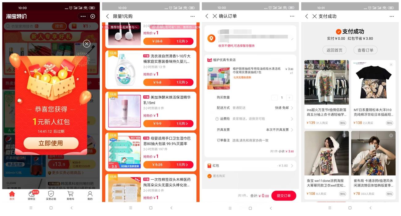 支付宝0撸抽纸零食等等包邮