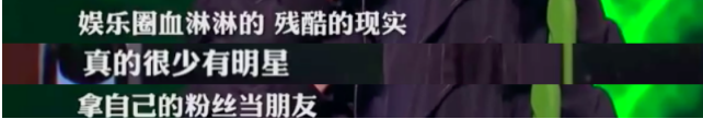 他们怕孩子在外生活不好又抹不开面子要钱,于是在看到这句话后,就不由分说地直接把钱汇过去,盼孩子能过得好。而你又怎么能狠下心,转身就把这笔带着温度的钱,送给这一辈子都不会和你有交集的陌生人?每个人都有追星的自由,但是在你为那颗遥远的星星拼死拼活时,请留出几秒钟的时间,多想一想近在咫尺的爹娘。那个为了见到刘德华,逼得父亲割肾又跳海自杀的杨丽娟,在41岁的时候终于悔悟: