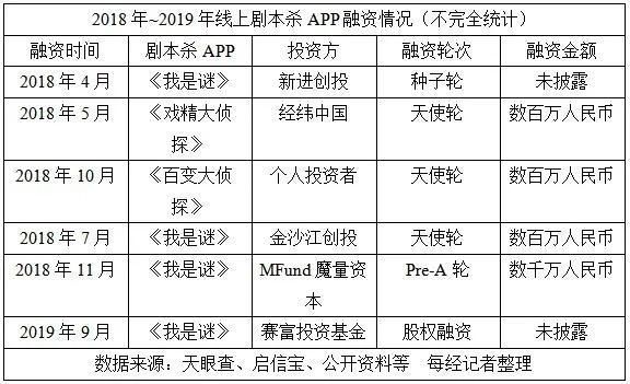 2018年可谓是剧本杀类产品的“融资元年”。据每经记者不完全统计,2018年至今,多个知名的线上剧本杀APP均有资本进入,融资金额从数百万人民币至数千万人民币不等。其中,头部APP《我是谜》在八个月完成了三轮融资。