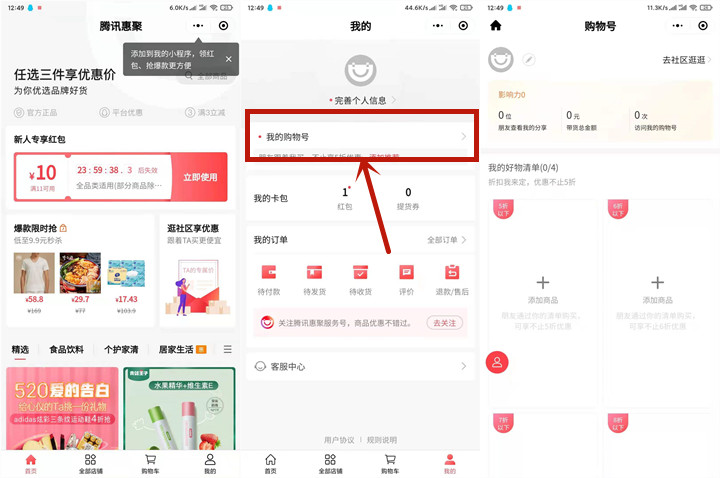 相信大家都知道抖音、快手等APP的直播带货,但是腾讯缺始终没什么大动作, 原来是在猥琐发育!这不,微信在近日推出了一个购物号的小程序,在这个购物号内 不仅可以购买商品也可以利用这个购物号来获得收益,但是目前是没有任何分佣的, 所以目前只适合商家去发展这个购物号! 微信搜索【腾讯惠聚】小程序,进去点击我的,即可看见【我的购物号】功能 在购物号里,前期每个人仅能挑选四件商品进行带货, 然后后续根据购物号 “影响力” 大小来获得更多的的带货位! 另外,购物号的号主分享清单货架中的商品给微信好友,微信好友可以用比直接 在惠聚中更加优惠的价格买下商品,而这个更优惠的价格,被称为“专属价”。 目前,微信购物号进入是没有限制的,任何人使用微信账号都可以通过小程序进入购物号 不过,因为目前带货没有任何佣金,所以带货号现在基本上处于发展阶段,也不知道后期是否加入佣金模式 如果没有佣金的话,那这个带货号估计很快就没人气了,因为小编发现这里面的商品价格普遍偏高! 要是后期做起来了,朋友圈是不是全是带货号的天下了? 毕竟微信用户这么多,但凡一点利润都可以让微信用户为期推广! 对了,目前【腾讯惠聚】小程序,目前新人有送10元满减券, 满11可用,有需要的小伙伴们可以去领取购买一下! |
