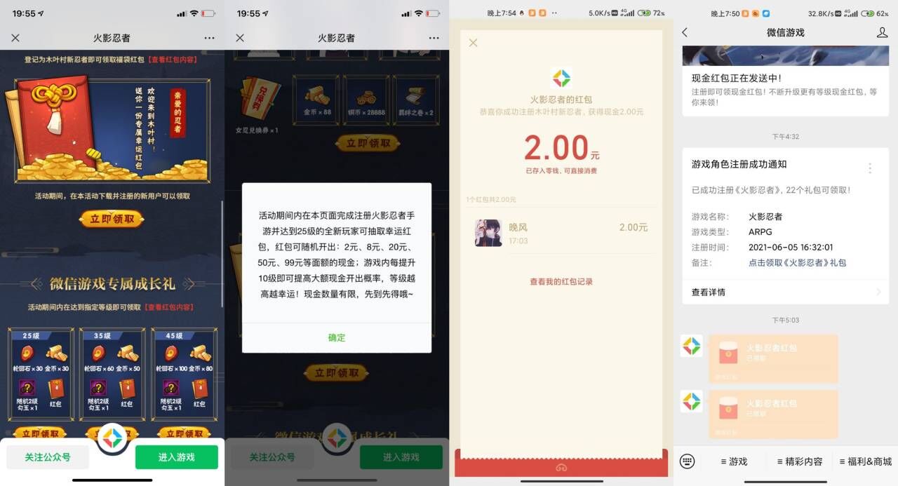 火影忍者新用户必中2~99红包