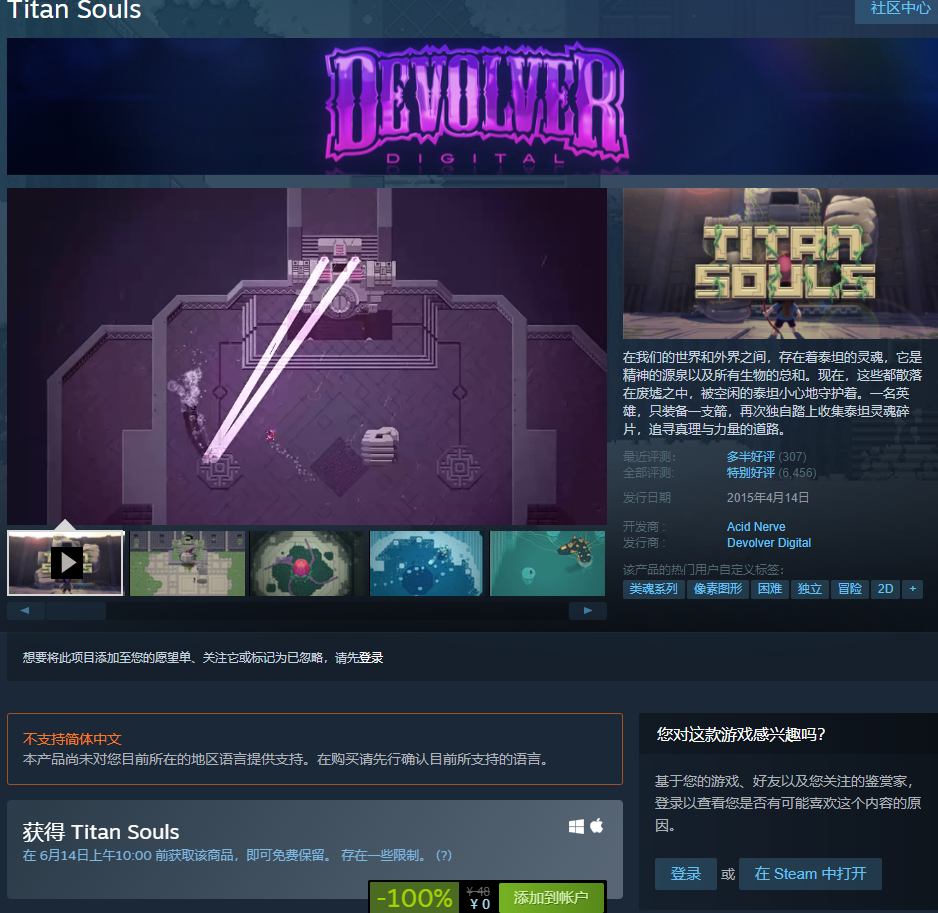 【steam免费喜+1】免费领《泰坦之魂》一款像素风格独立动作游戏,玩家将探索远古废墟,找到他们的弱点并将其击败!
