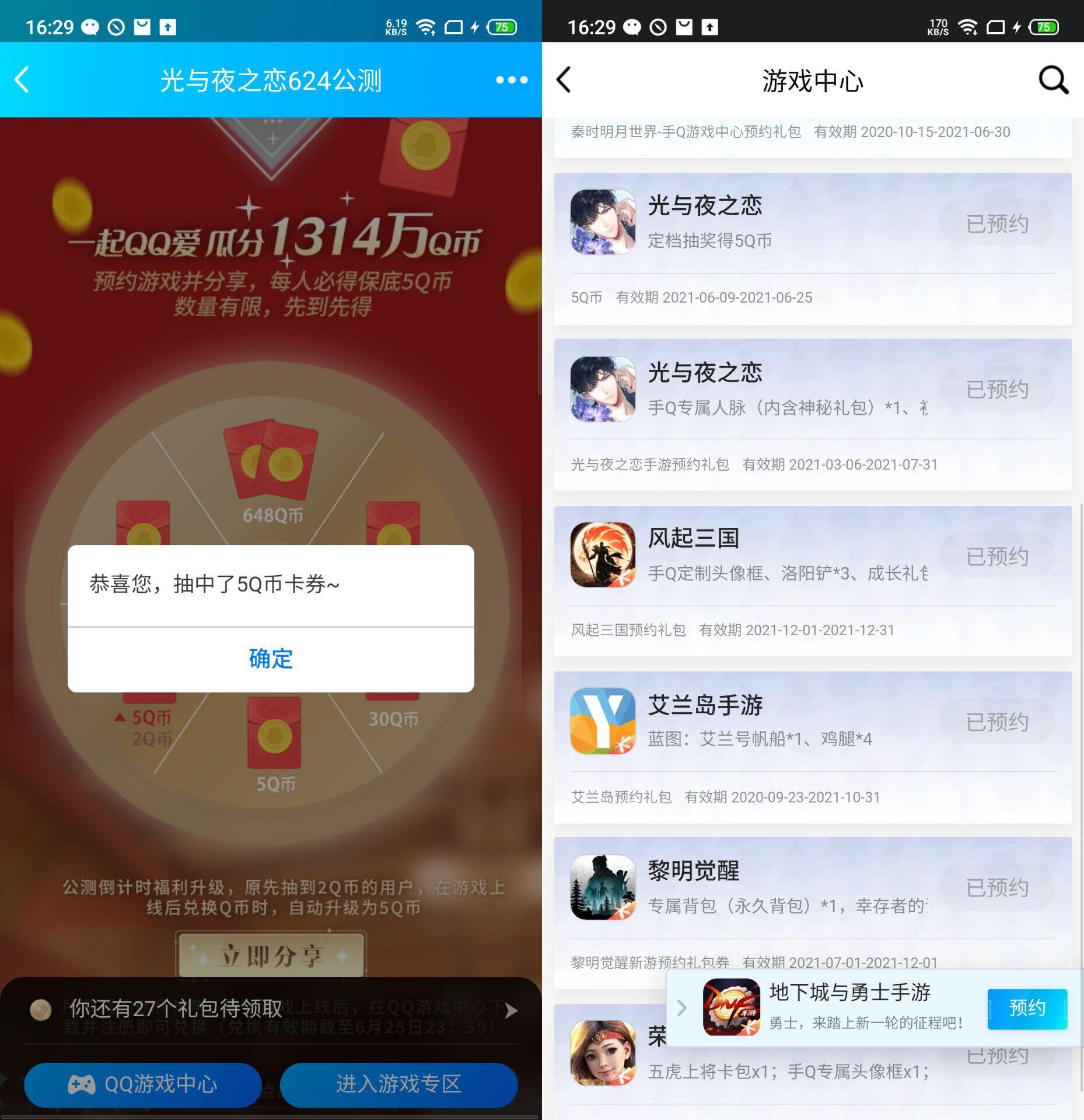 【光与夜之恋领5~12Q币】保底最少必中5Q币卡券!打开预约后下拉页面随便分享抽奖->等游戏明天上线后就能兑换了!没抽过的上!