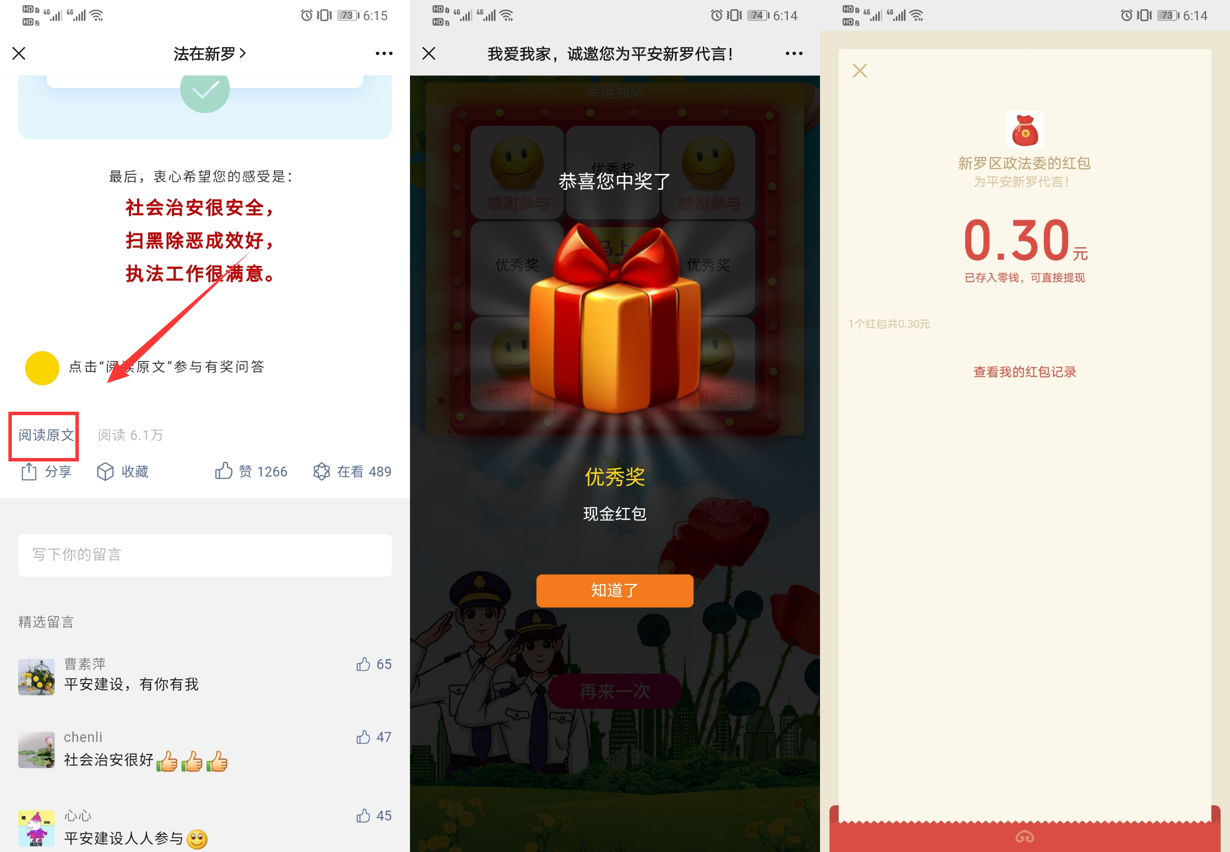 微信打开阅读原文->答题全部选第一个->机会用完非必中->亲测0.30元微信红包!