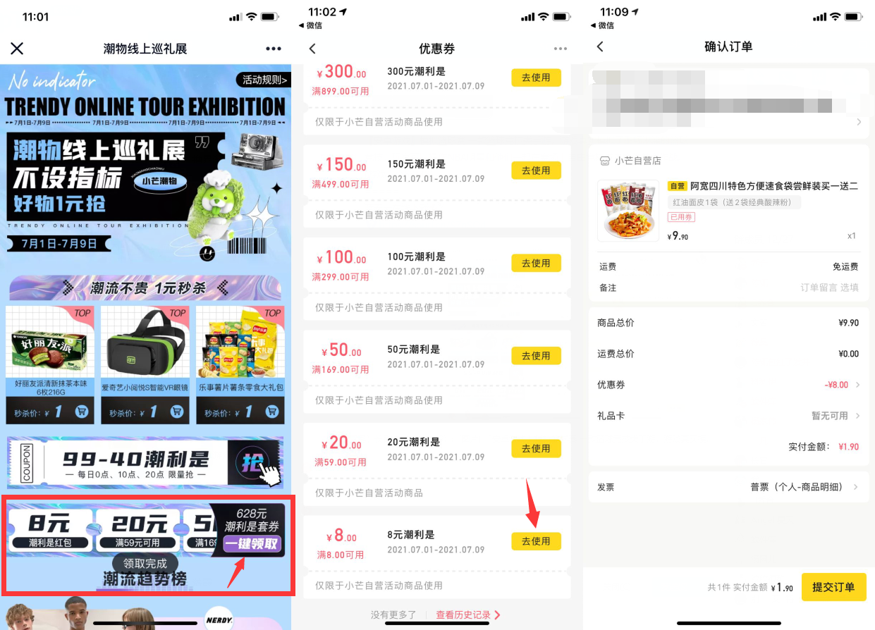 【小芒老用户1元撸9元实物包邮】打开地址下拉页面->点8元潮利是红包->一键领取成功后->去小芒APP->我的优惠券->找到8元券使用->点价格->买10元内的商品->下单就会抵扣->部分地区不包邮!看清楚!
