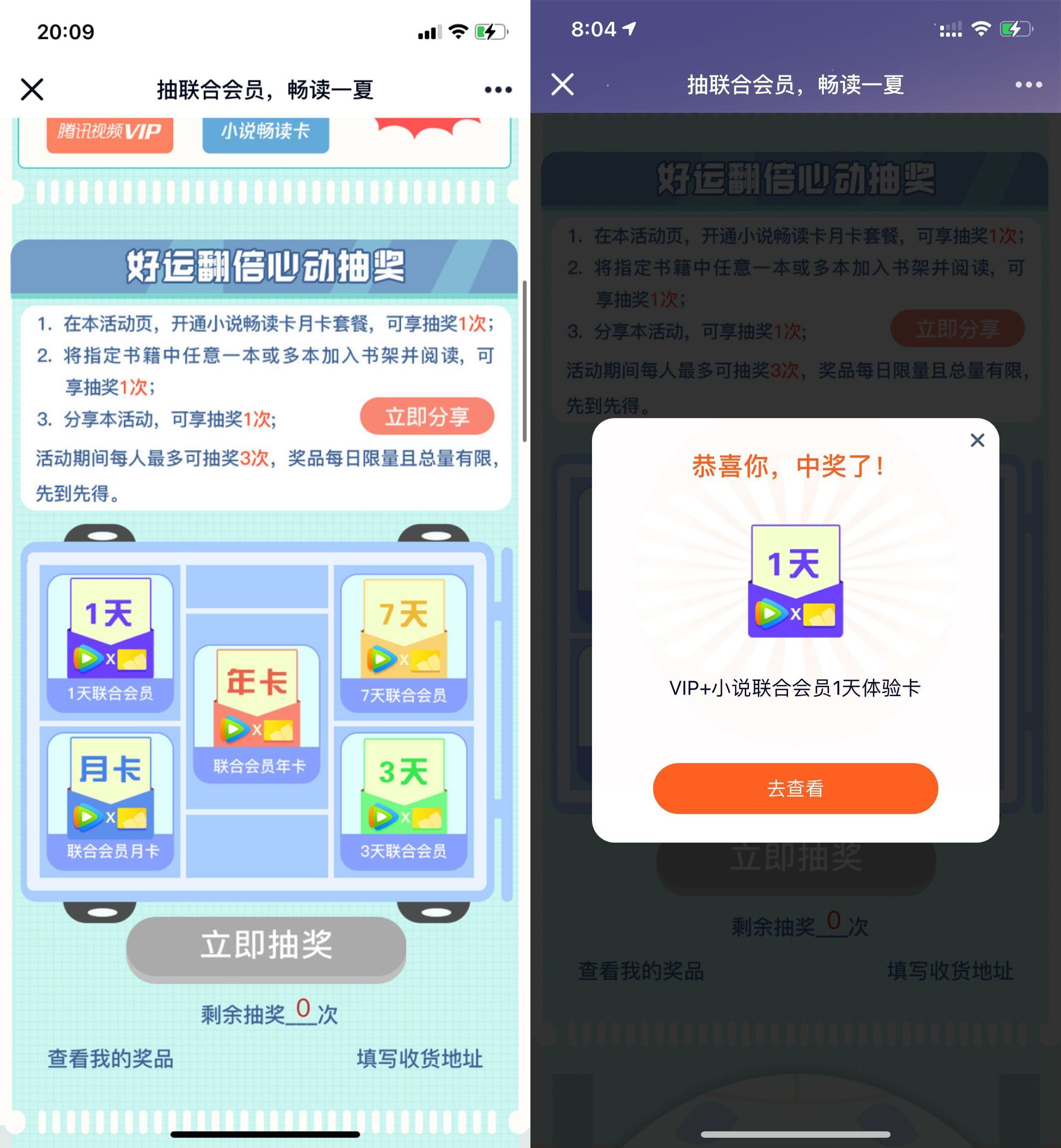 【免费领2~366天腾讯视频会员】之前抽过的换号!QQ和微信都可以参加!立即分享获得一次机会抽奖->下拉指定书籍加入书架并阅读又能得一次机会抽奖。
