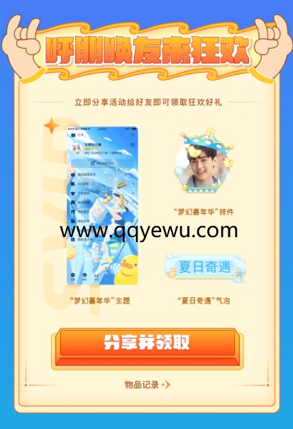 QQ712会员节夏日游乐会 免费领梦幻嘉年华主题+挂件+气泡