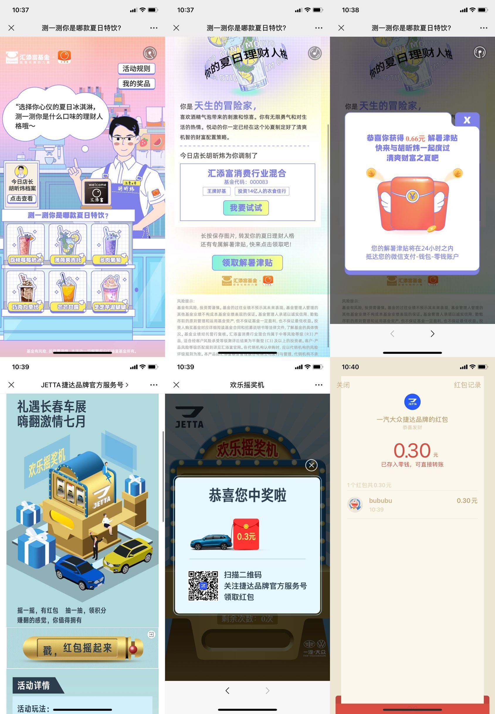 1、微信关注“汇添富基金”公众号->回复测试->点推文进入->随便点个特饮->点领取解暑津贴领取->亲测中0.66元