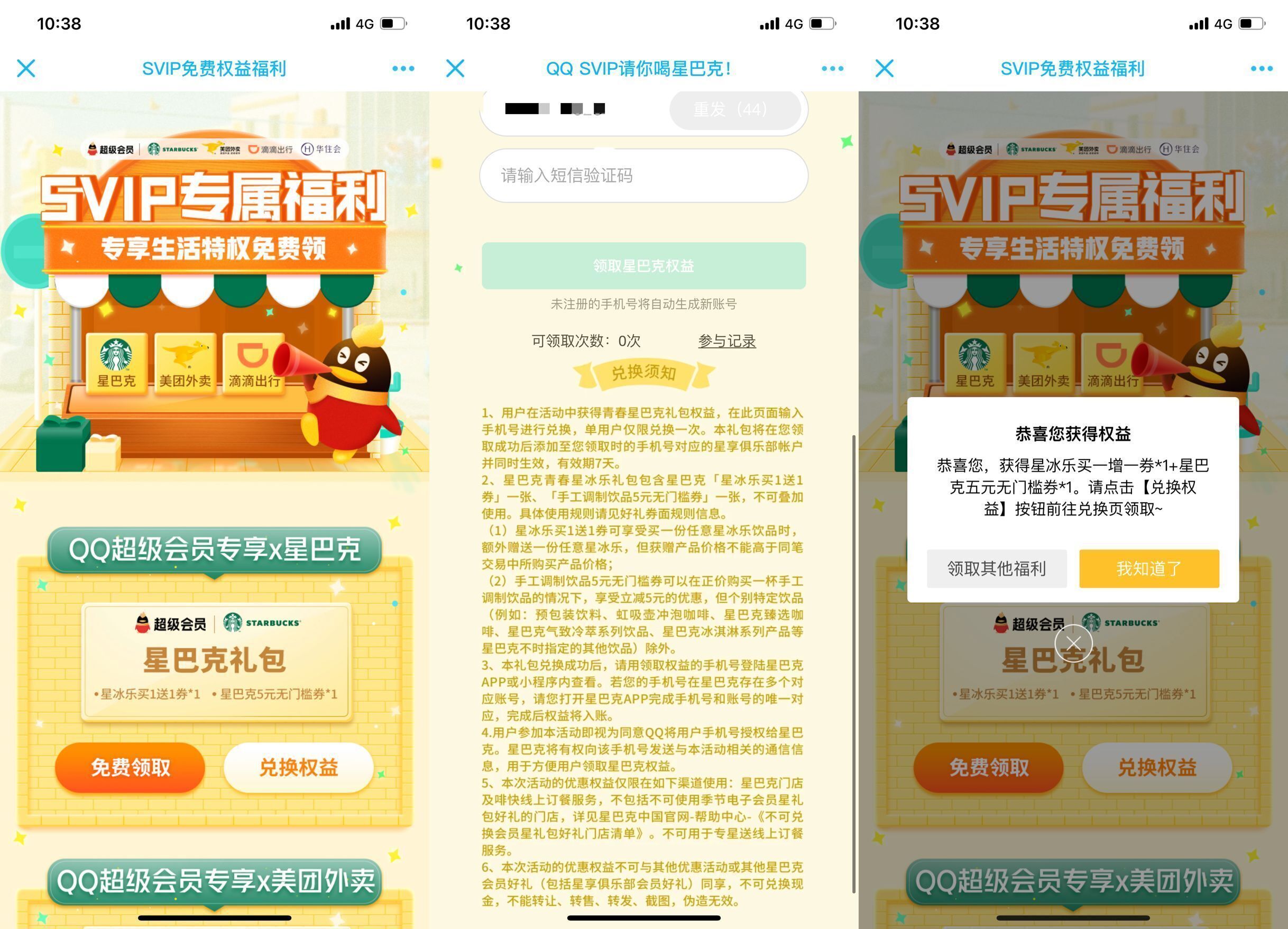 【超会免费领星巴克买一赠一券】打开直接领取->根据提示到门店购买指定饮品即可!明天就结束了,有超会没领的领下,自己用不着可以挂海鲜市场。
