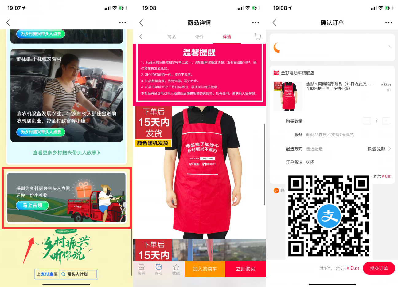 【支付宝1分撸水杯或围裙包邮】支付宝扫码进入->下拉到底->点马上去领->下单是0.01元说明就可以->备注水杯或者围裙->坐等发货到家即可!