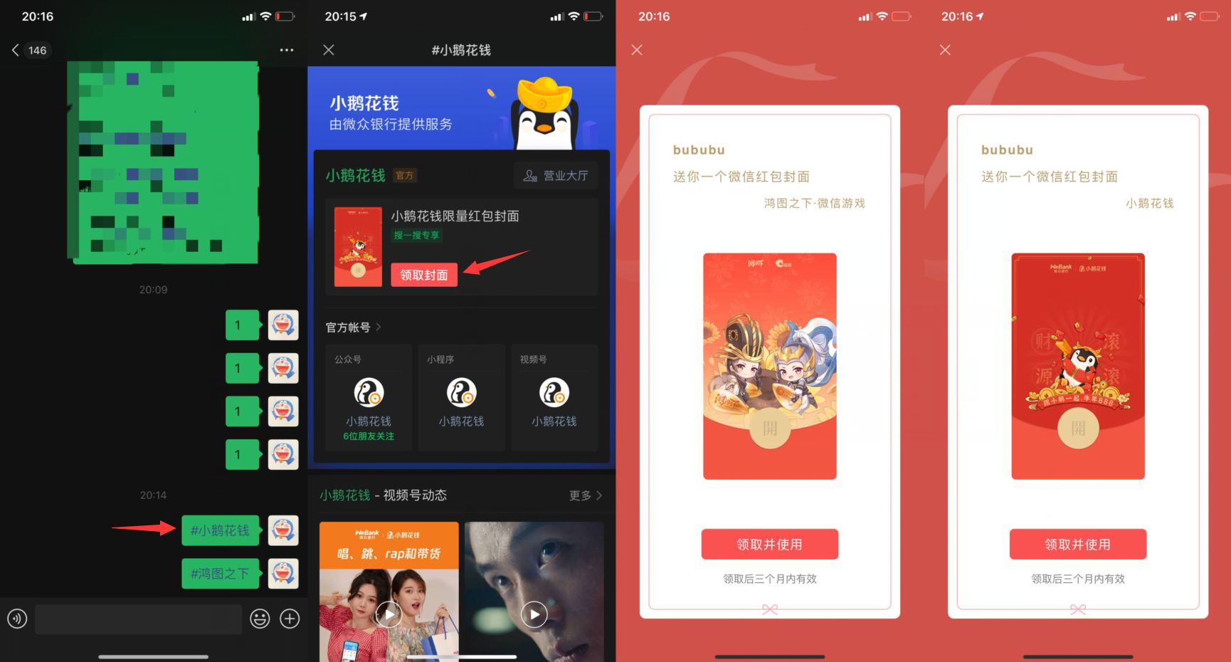 『最新免费领微信红包皮肤封面』给任意好友发送“#小鹅花钱”“#鸿图之下”->如上图点蓝色字体进去领取即可->每天限量!喜欢的去领一下~