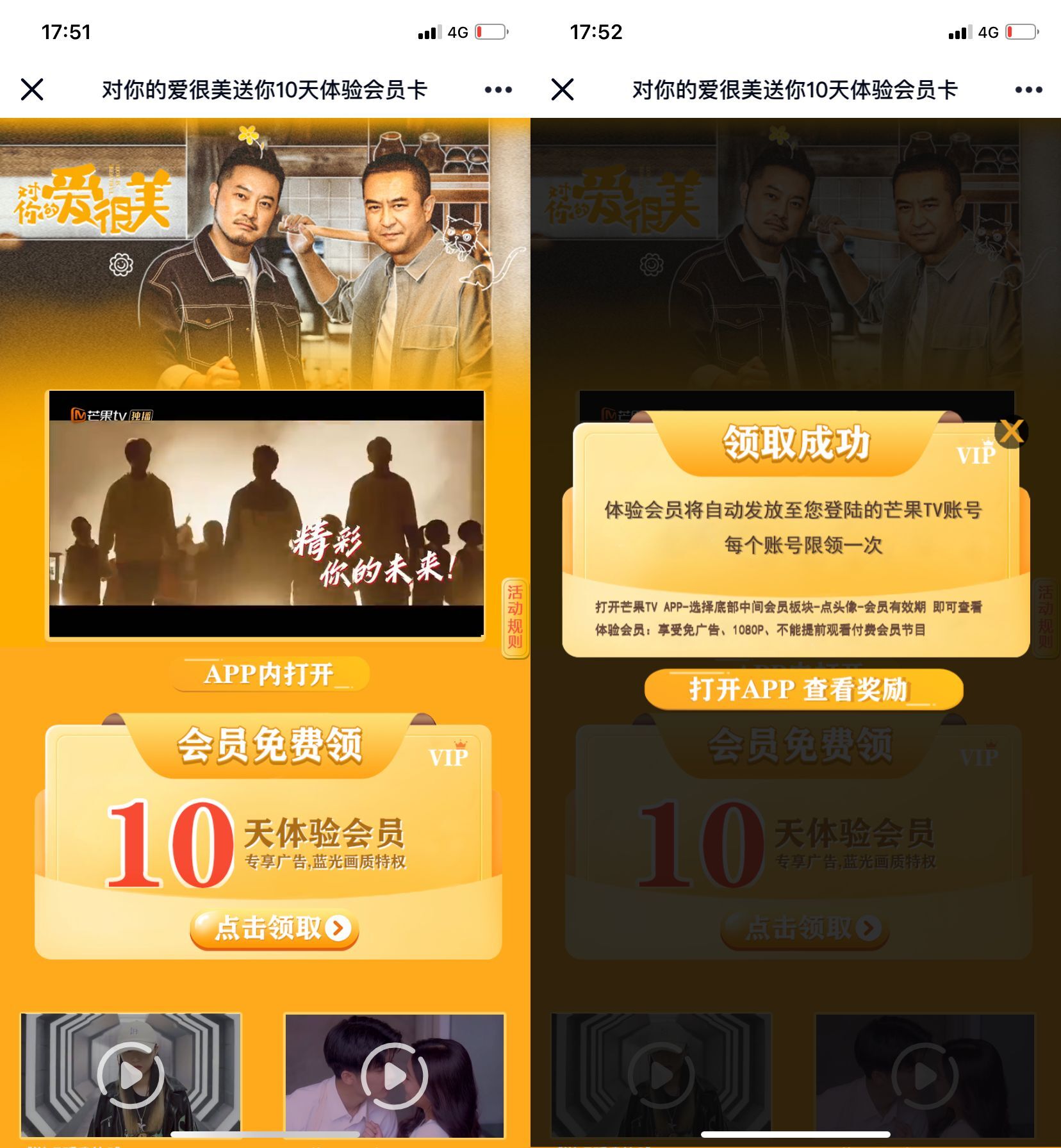 新一期领10天芒果体验会员->可以免无广告+蓝光画质观影->喜欢追剧的可以领一手!