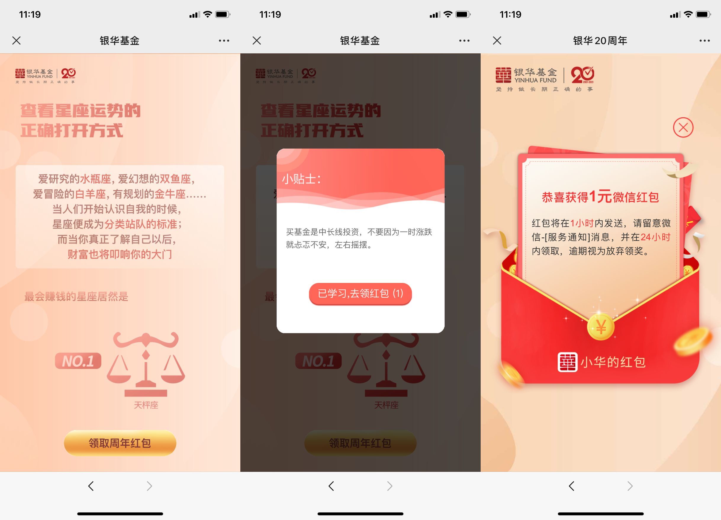 【银华基金领1元红包】微信打开->跟着指引走->之前领过的也去看看->登录必中1元微信红包!