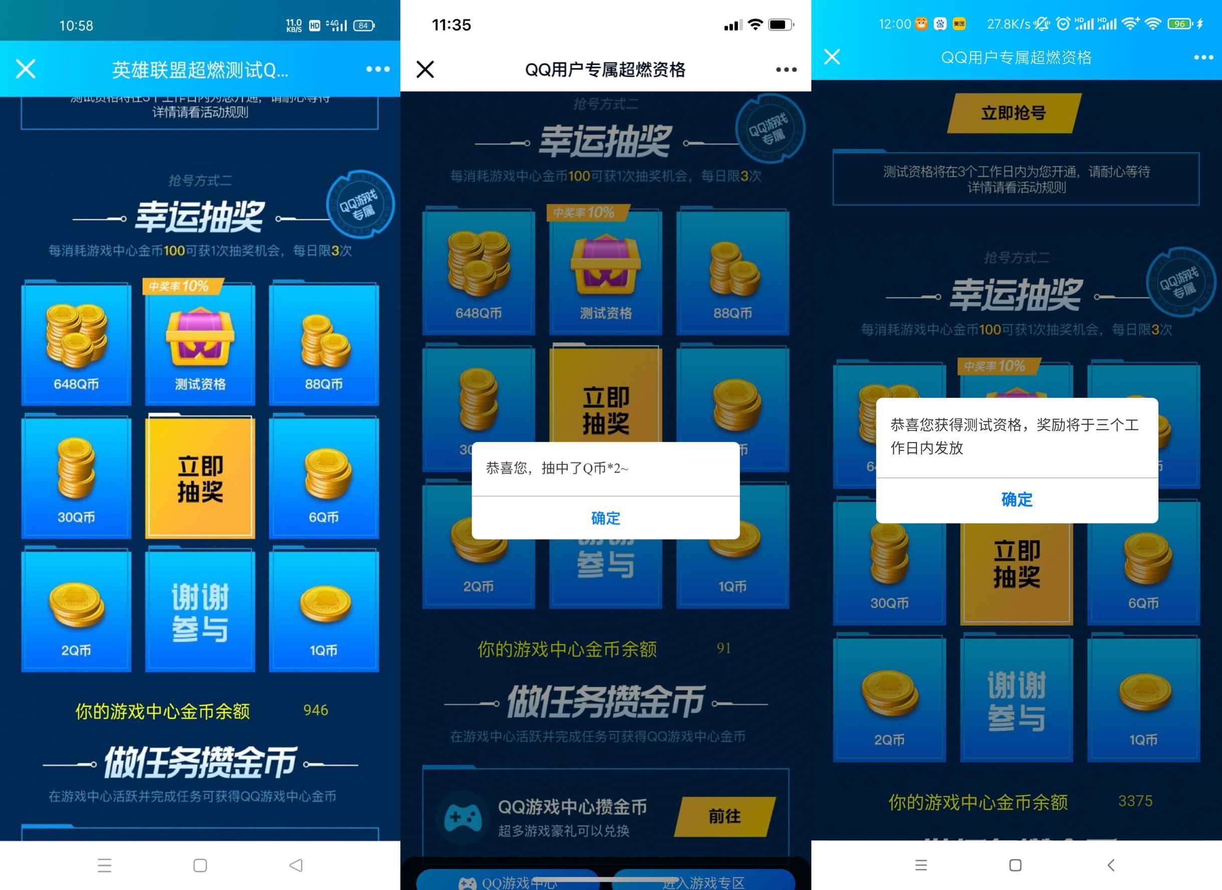 【英雄联盟手游抽测试资格】先预约!7月21-23每天中午12点可以抢号->下拉页面抽Q币卡券!三次机会抽完!没金币去领!之前QQ和微信抽测试资格三次还没抽完记得抽下!