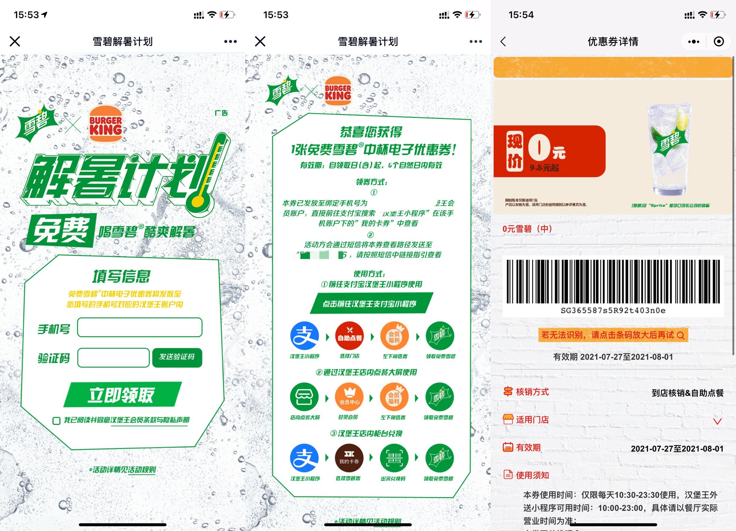 汉堡王免费领2杯中杯雪碧
