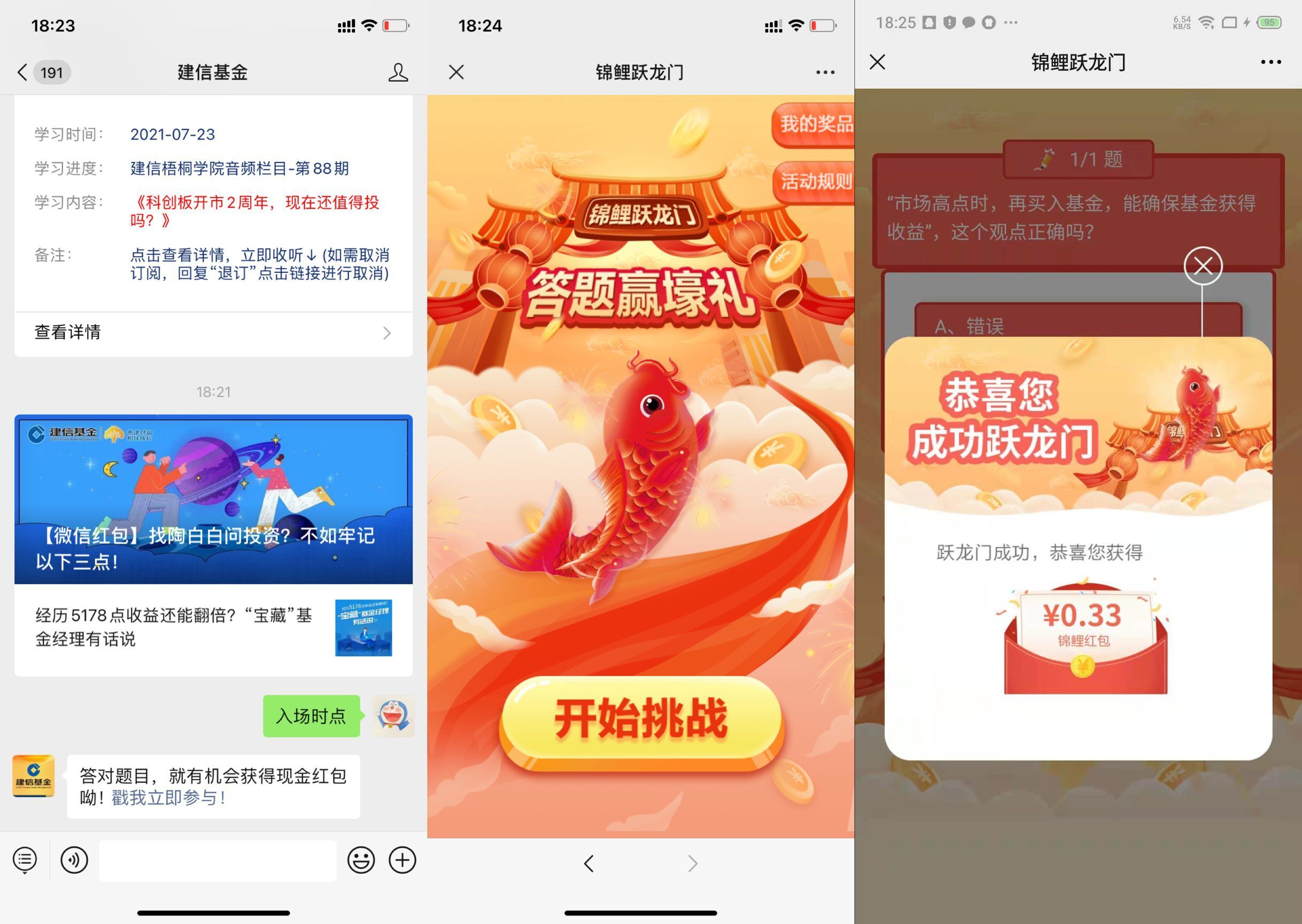 微信关注“建信基金”回复“入场时点”->点推文参与答题选错误->亲测0.33元微信红包!非必中不中换号!