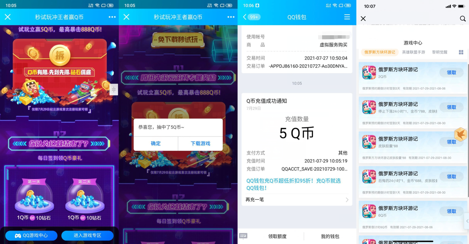 【俄罗斯方块领5Q币】玩了上面的无视->无需下游戏!点”免下载秒试玩“->进去游戏无需玩返回就领5Q币!还有卡券里的Q币记得领,领取失败就不定时看看!这个两个5Q币都是必中!
