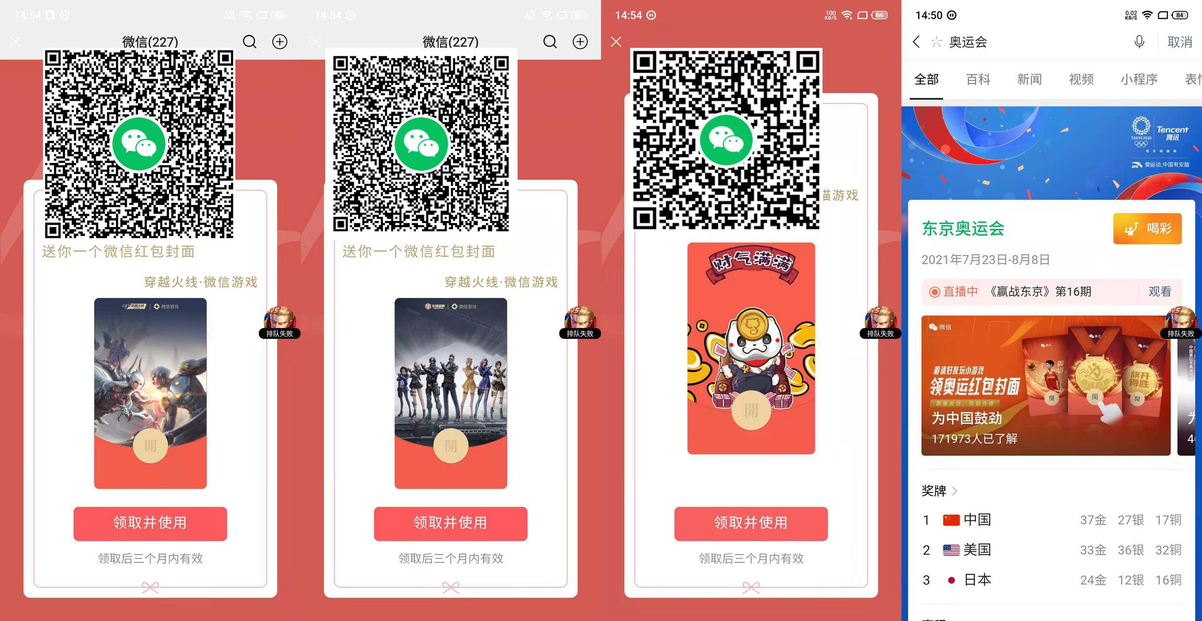 【最新微信红包封面合集】喜欢收集红包的领上!前面3个是直接微信扫码领取,链接1、2是下拉抽奥特曼封面。还有个奥运封面,微信搜一搜“奥运会”如图所示玩游戏领取即可!