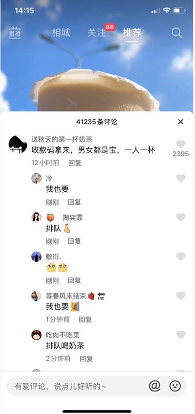 抖音截流,在相关奶茶的视频下面评论,个人抖音主页上写:v:XXXX,免费请你喝一杯奶茶