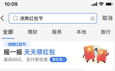 a、在支付宝搜索凉爽红包节,高温补贴都可以,摇一摇领红包,可以领取到1元红包